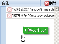 登録されているグループ、及び、アドレス、メールアドレスはドラッグ&ドロップで【宛先】【CC】【BCC】へ追加が可能です。