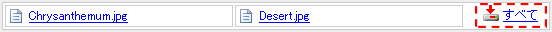 複数のファイルが添付されているメールの参照画面を表示すると、添付ファイル一覧の右端に「すべて」が表示されます。